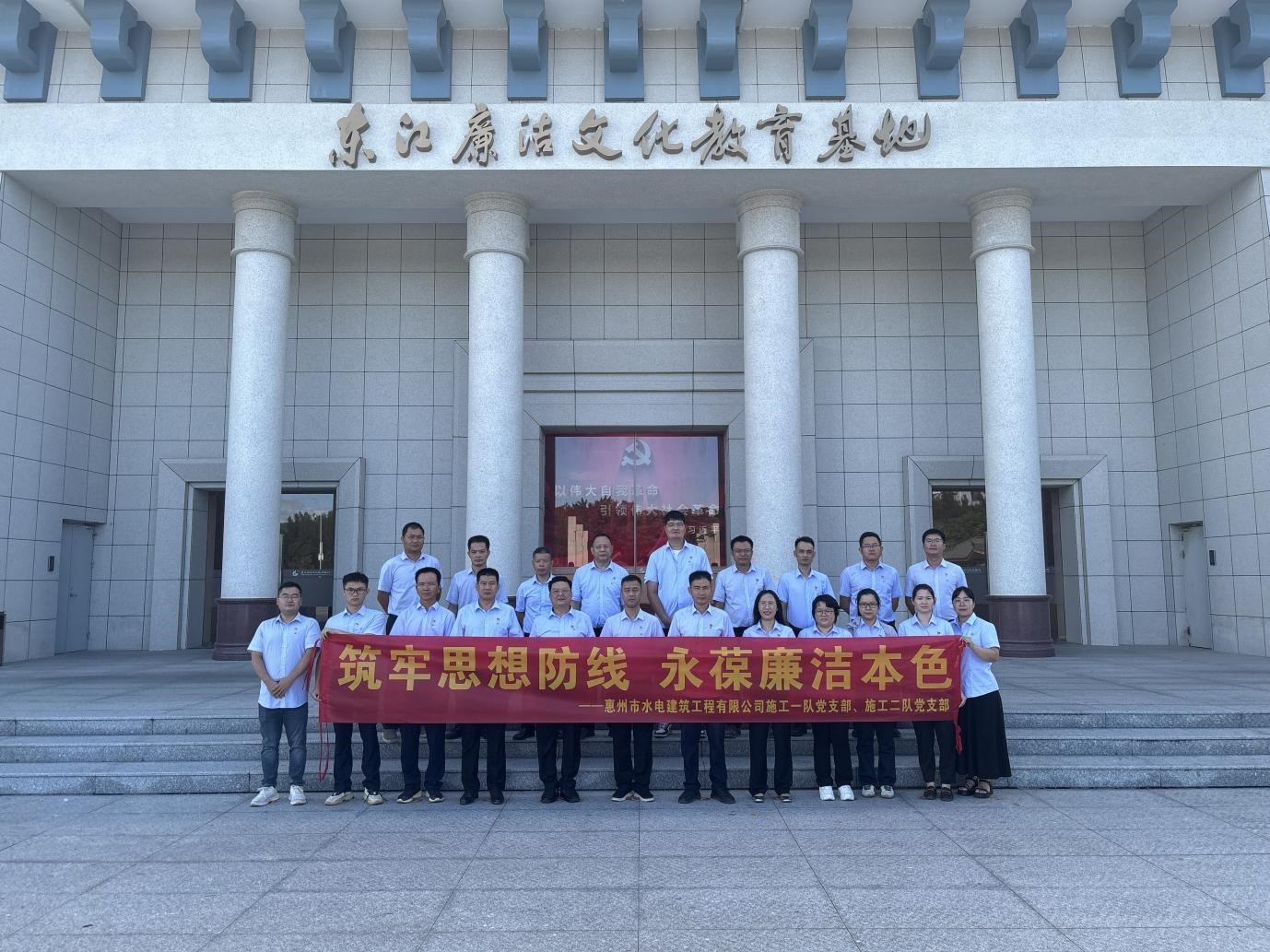 為扎實推進黨風(fēng)廉政建設(shè),增強黨員干部廉潔自律意識,6月11日,施工一隊、施工二隊黨支部組織黨員赴博羅東江廉潔文化教育基地開展“筑牢思想防線 永葆廉潔本色”主題黨日活動,通過沉浸式廉潔教育,進一步筑牢黨員拒腐防變思想防線?!?/p>