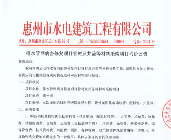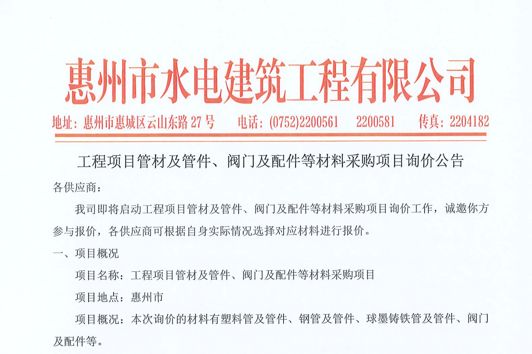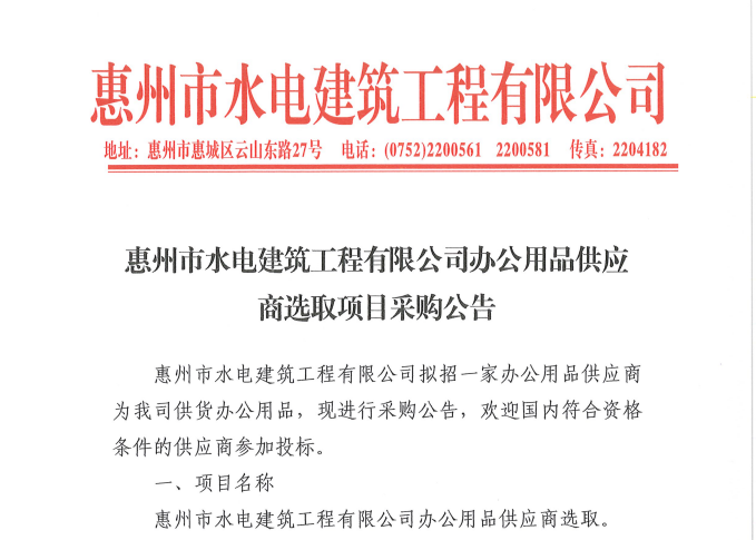 惠州市水電建筑工程有限公司辦公用品供應(yīng)商選取項目采購公告……