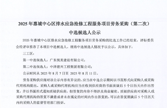 惠州市水電建筑工程有限公司勞務(wù)供應(yīng)商庫擴庫評審結(jié)果公示……
